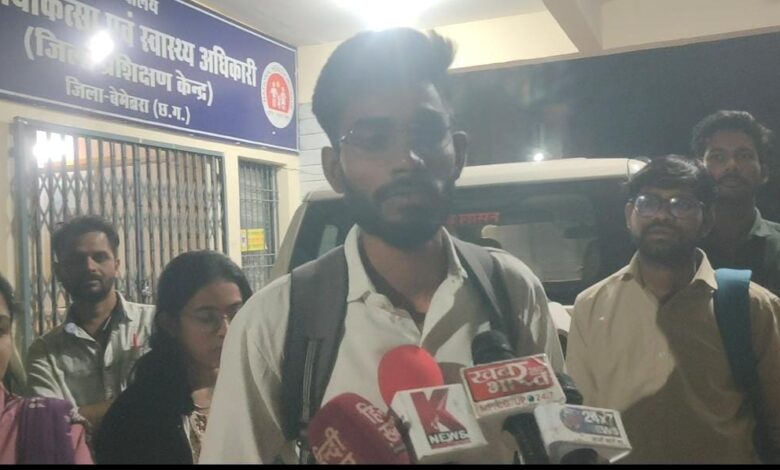 अभ्यर्थी संजय चंद्राकर ने बताया कि स्वास्थ्य विभाग के विभिन्न पदों में भर्ती के लिए व्यापम परीक्षा आयोजित हुई, इसमें अनुभव प्रमाण पत्र मांगा गया है। इसके लिए मंगलवार सुबह 10:30 बजे सीएमएचओ कार्यालय पहुंचे, लेकिन रात 1:45 तक रोका गया। 29 जनवरी तक अनुभव प्रमाण पत्र स्पीड पोस्ट के माध्यम से सीएमएचओ कार्यालय में जमा करना अनिवार्य है, 28 तारीख रात्रि तक सभी अभ्यर्थियों को रोक के रखा गया। जो कार्य कार्यालयीन समय में संपादित होना था उसे प्रक्रिया के नाम पर देर रात तक रोका गया, जो दुर्भाग्यजनक है।